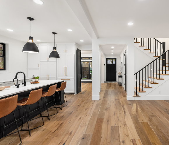 Choose from a selection of premium hardwoods, offering timeless beauty and long-lasting performance for high-traffic areas.